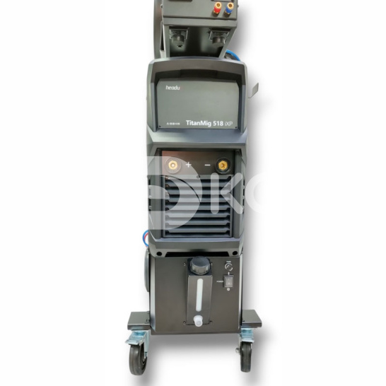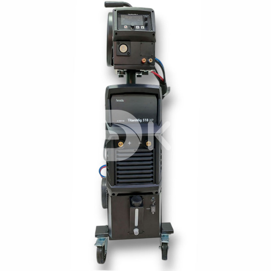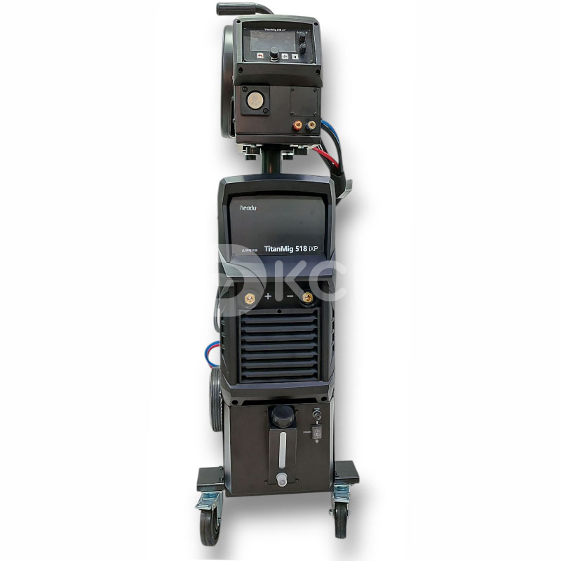 Комплект поставки: сварочный аппарат TitanMig 518iXP, сварочная горелка 500А водяное охлаждение длиной 3м, заземляющий кабель 3м, соединительный кабель 10м, механизм подачи сварочной проволоки H10, транспортировочная тележка.